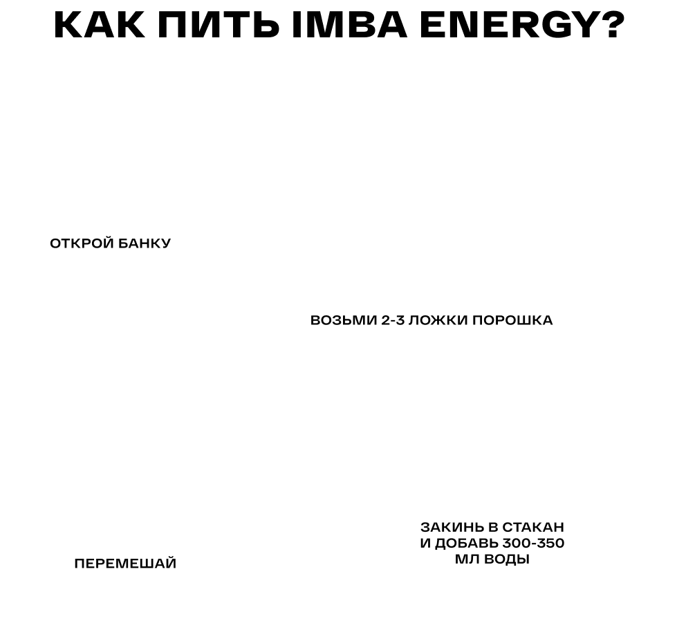- допускается использование газированной воды, а также Ваших любимых соков и лимонадов для приготовления IMBA ENERGY.